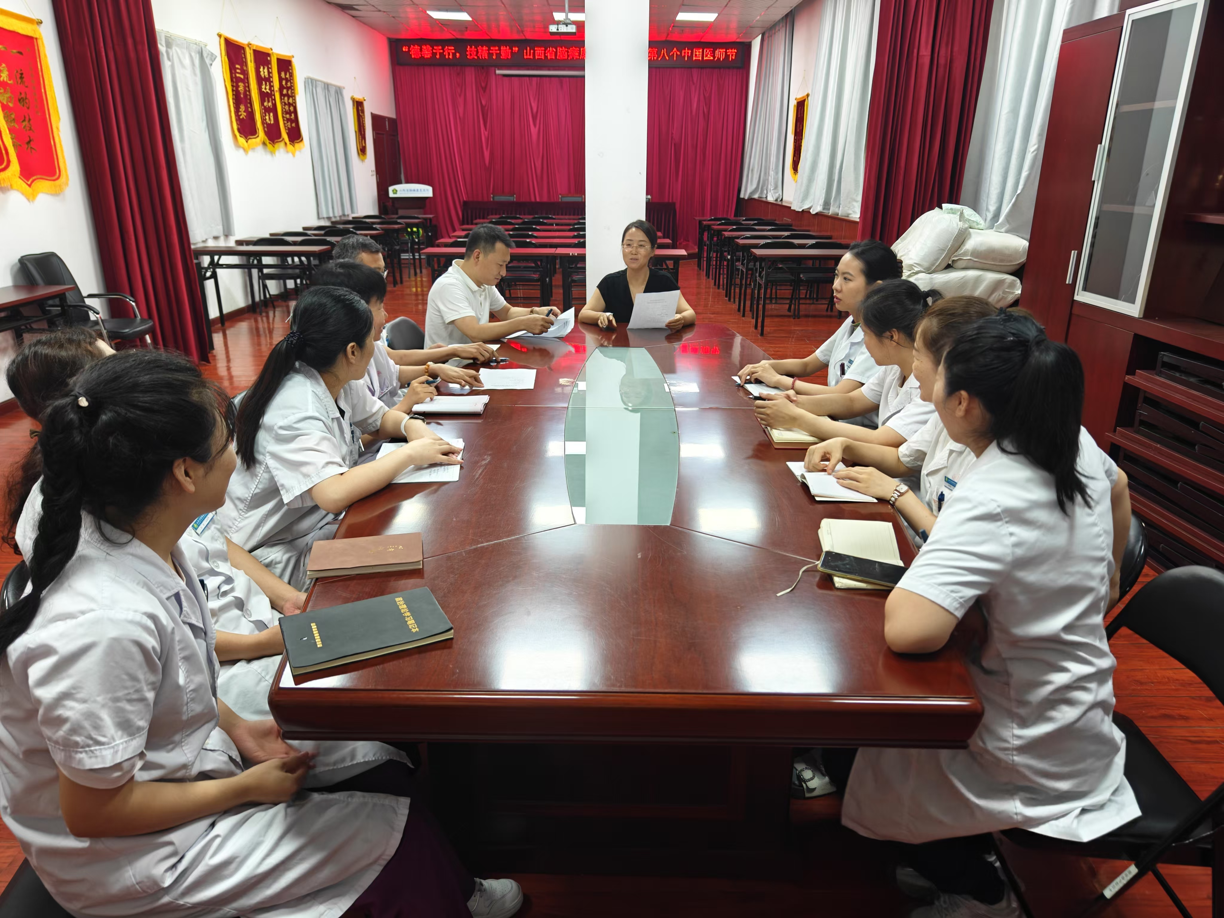 为进一步弘扬 “敬佑生命、救死扶伤、甘于奉献、大爱无疆”的崇高职业精神,凝聚医师队伍力量,在第八个中国医师节到来之际,8月19日上午,省脑瘫康复医院在会议室召开“德馨于行 技精于勤”医师节主题座谈会,副院长王美荣与全体医师齐聚一堂,共庆属于医者的专属节日,共话医院发展与职业担当。