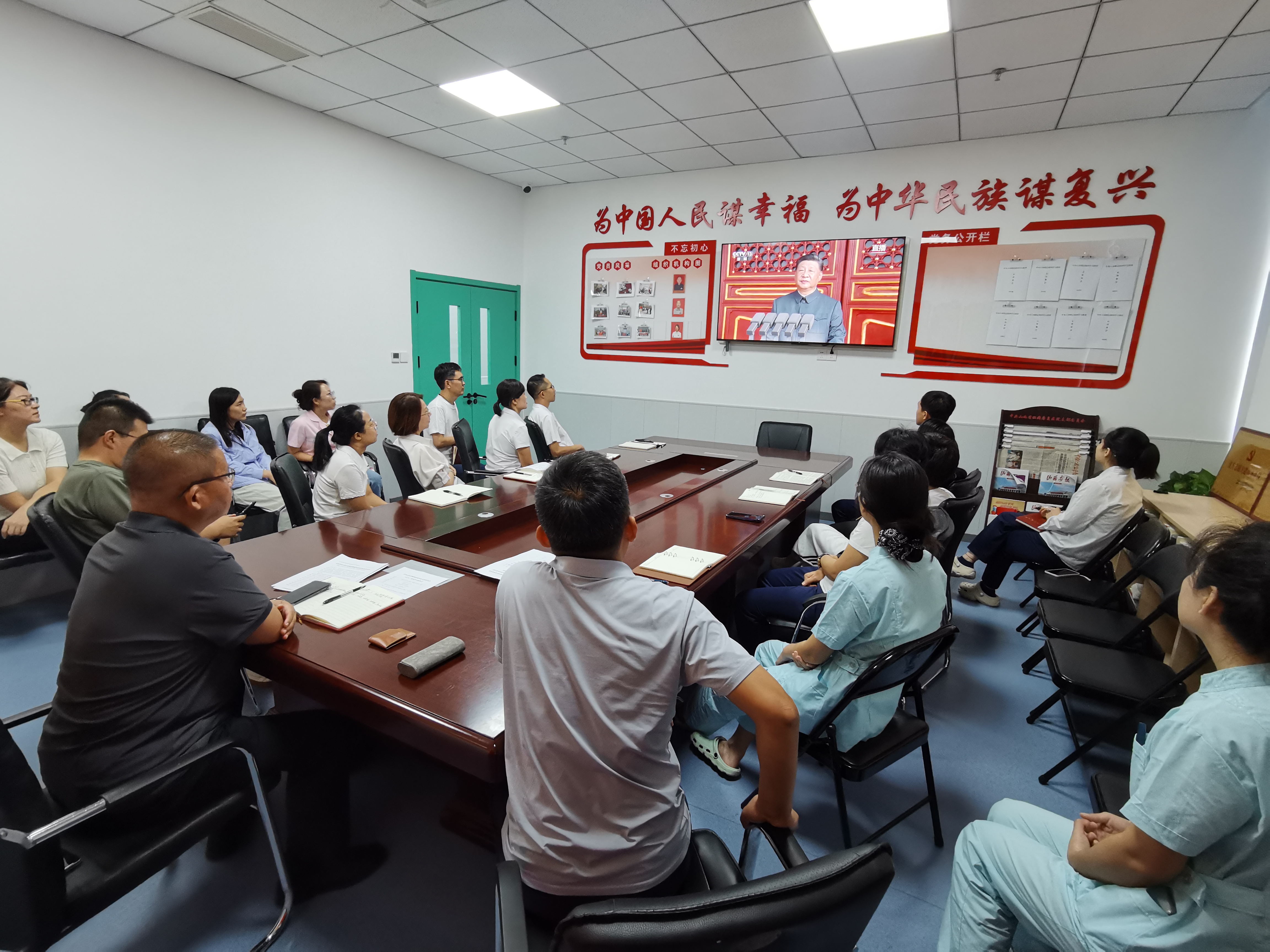 医院全体党员、入党积极分子观看阅兵仪式