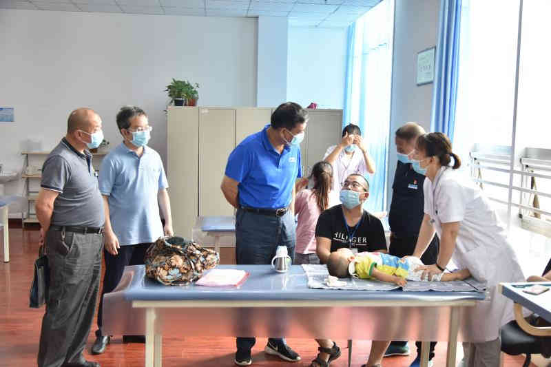 李俊温副理事长一行在我院党支部书记、院长沙佳宽,党支部副书记、副院长张永宏的陪同下,深入医院一线临床康复科室看望正在接受康复训练的患儿及家长们,李俊温副理事长亲切地询问着他们的康复治疗效果、家庭情况、住院费用等有关情况,并鼓励家长们一定要让孩子们坚持康复训练。同时,李俊温副理事长向全体医务工作人员致以亲切地问候和关心。