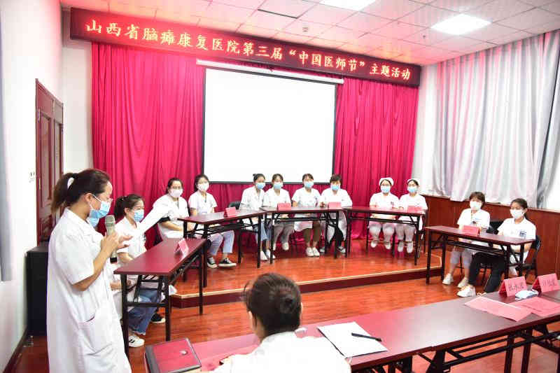 8月19日是第三个“中国医师节”。为进一步弘扬抗疫精神,彰显医务工作者护佑人民健康的职责使命,增强医务人员职业荣誉感和神圣使命感,营造良好的医院氛围,8月19日,山西省脑瘫康复医院举行以“医者仁心,感恩有你”为主题的系列庆祝活动,展现医师风采,重温医师誓词,知识竞赛,表彰先进。