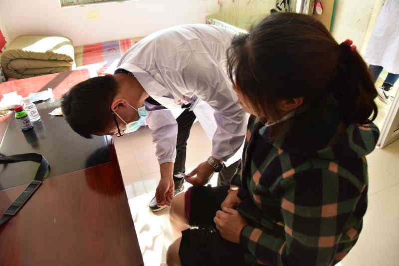 17日上午,医院义诊服务队携带着理疗、检查仪器等来到石坡村广场,只见已有前来问诊、咨询的村民们早早等候着。医疗队的专家们热情地接待每一位村民,通过测量血压、问诊把脉、询问病史及身体状况,认真分析病情,耐心解答村民们关心的问题。根据每一个村民的个体情况,施以推拿、针刺、理疗等治疗,并现场讲解常见疾病的预防知识和自我保健知识,甚至还主动上门看望行动不便的村民,给予康复指导和行针灸治疗。