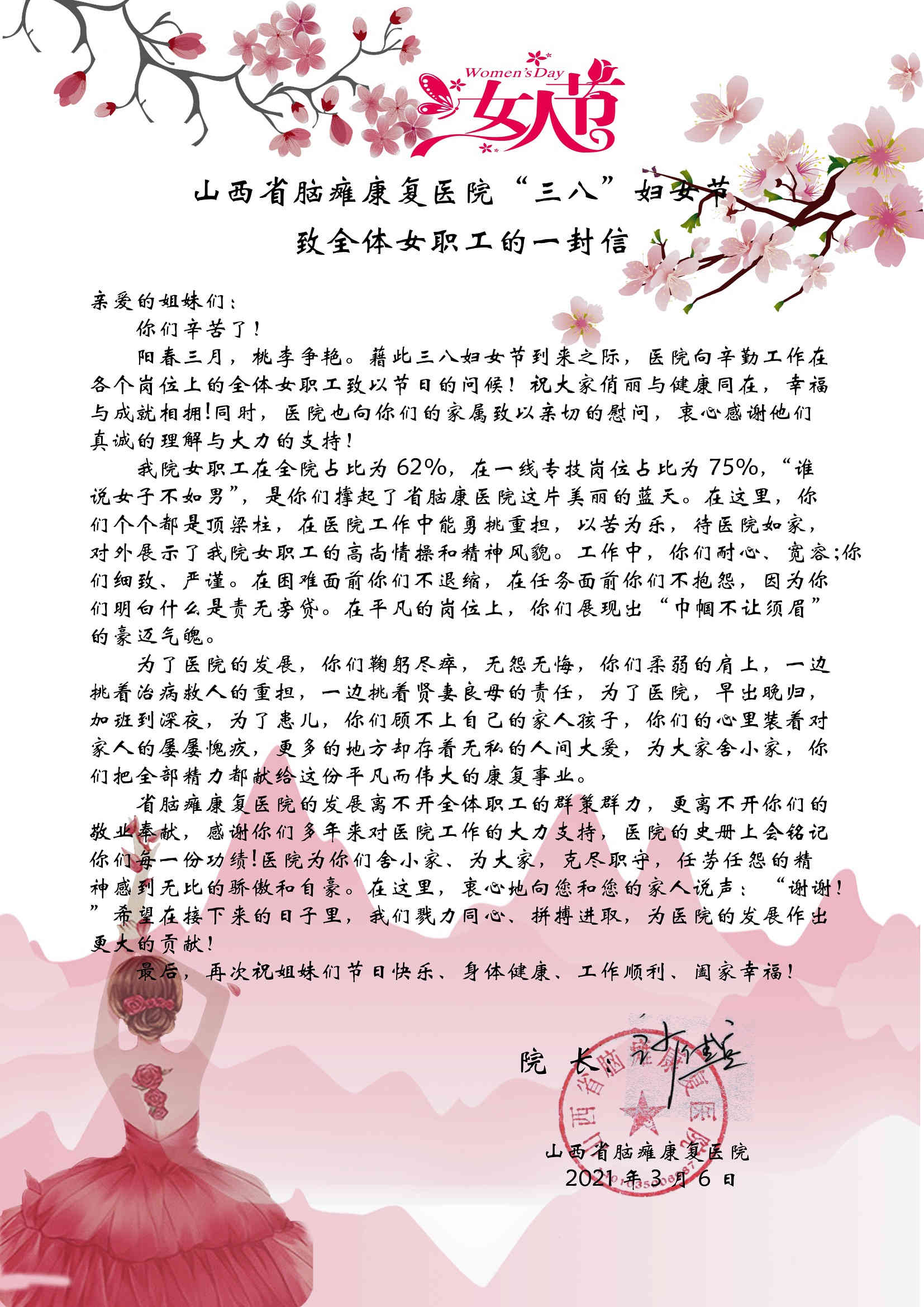 山西省脑瘫康复医院“三八”妇女节致全体女职工的一封信